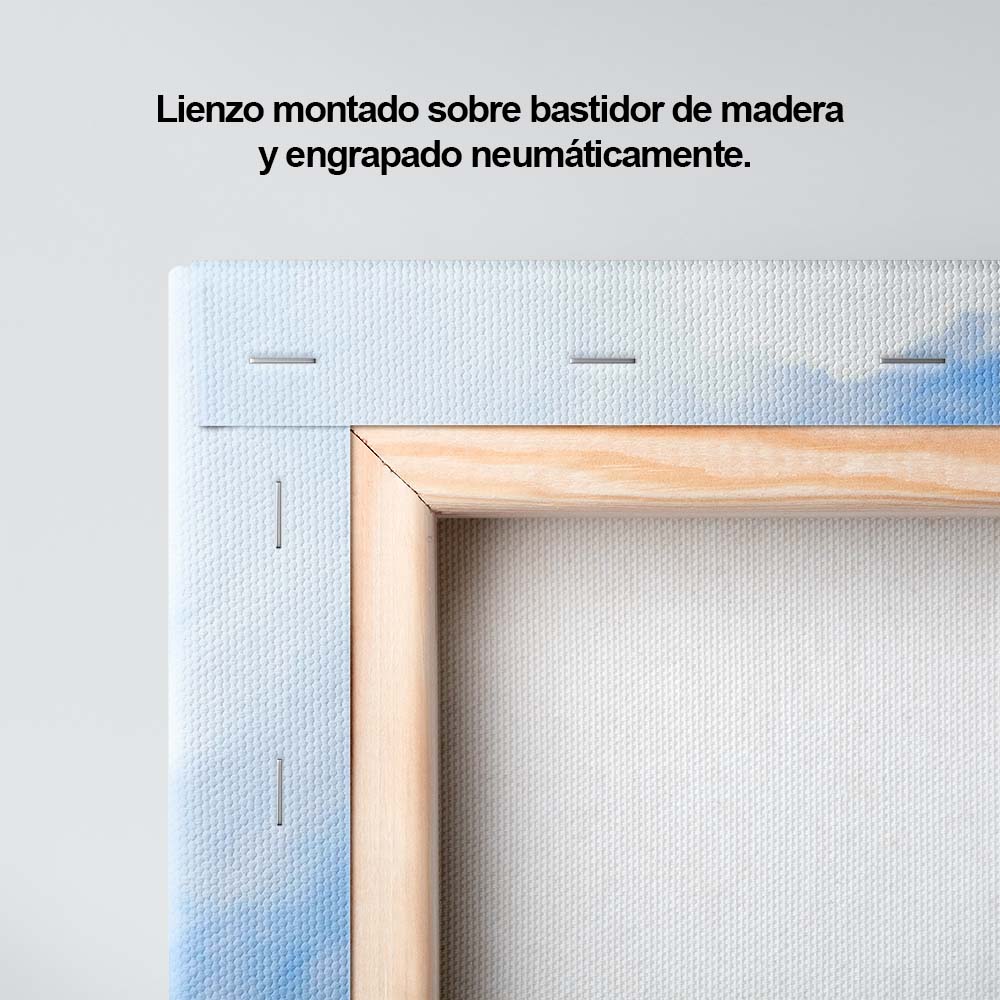 Materiales: Arte impreso sobre un lienzo de algodón, montado sobre un bastidor de madera de pino con un grosor de 4cm.