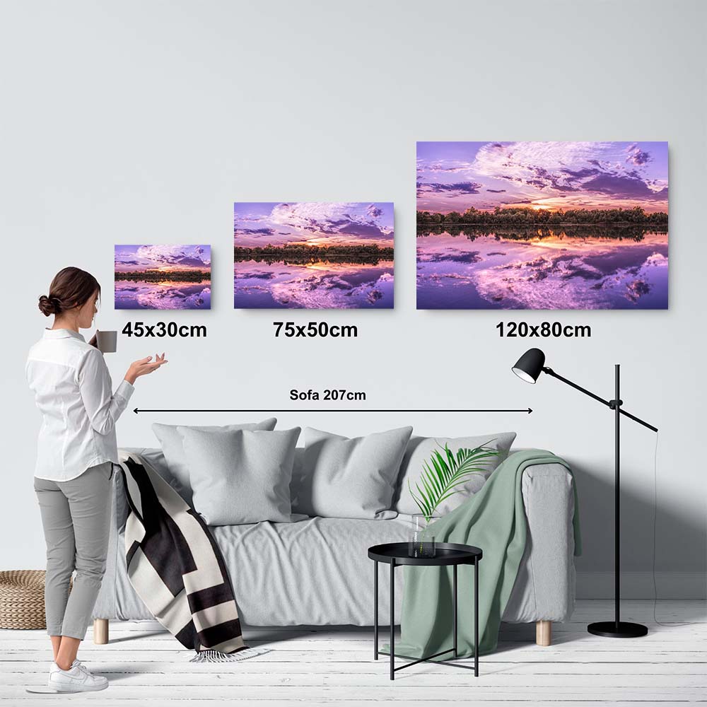 Materiales: Arte impreso sobre un lienzo de algodón, montado sobre un bastidor de madera de pino con un grosor de 4cm.