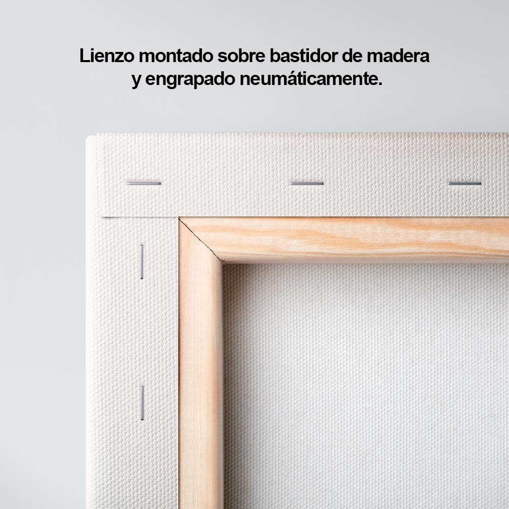 Materiales: Arte impreso sobre un lienzo de algodón, montado sobre un bastidor de madera de pino con un grosor de 4cm.