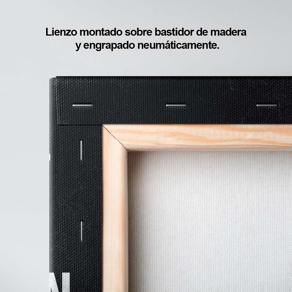 Materiales: Arte impreso sobre un lienzo de algodón, montado sobre un bastidor de madera de pino con un grosor de 4cm.