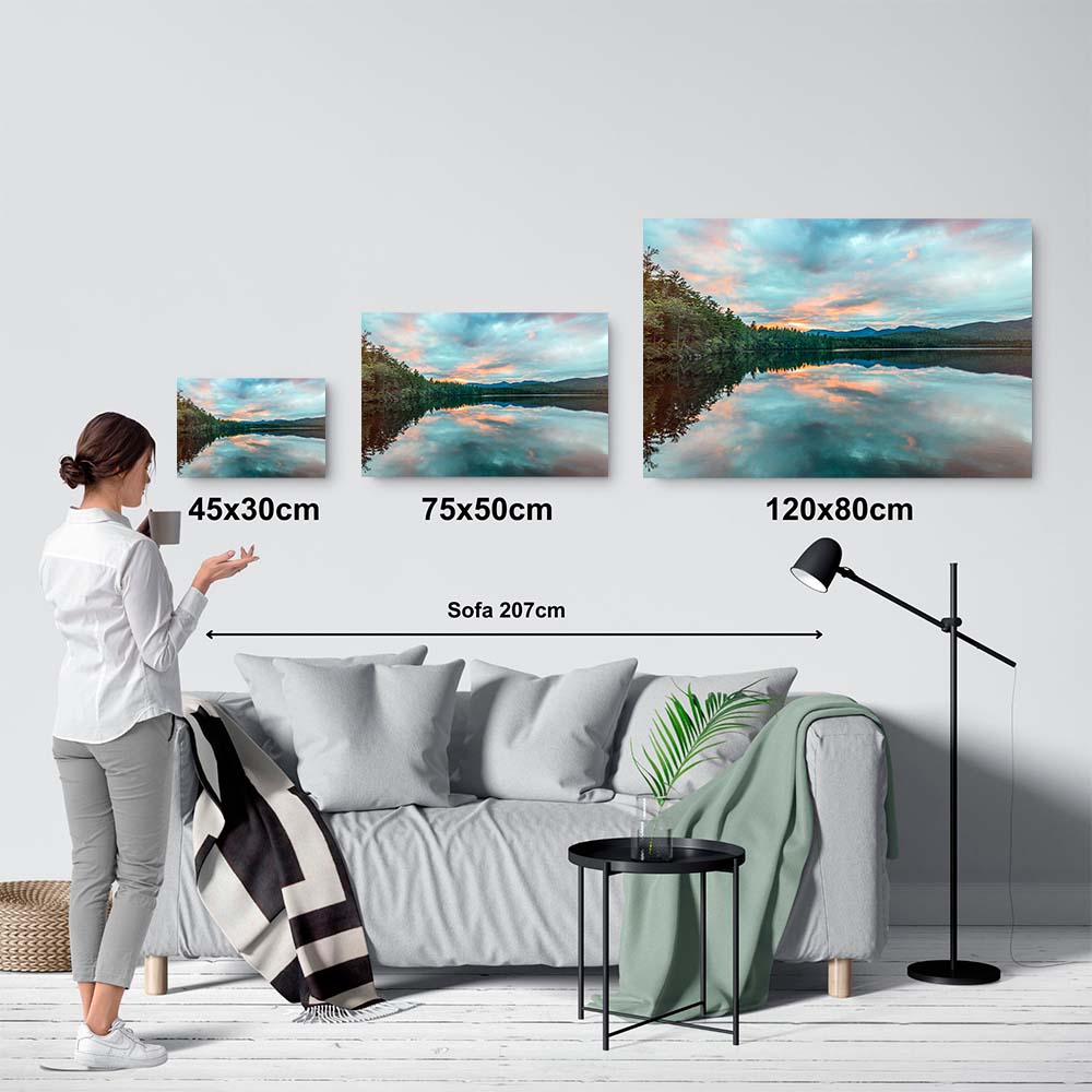 Materiales: Arte impreso sobre un lienzo de algodón, montado sobre un bastidor de madera de pino con un grosor de 4cm.