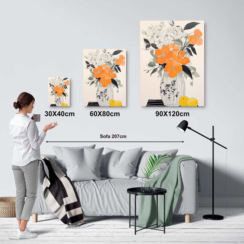 Materiales: Arte impreso sobre un lienzo de algodón, montado sobre un bastidor de madera de pino con un grosor de 4cm.