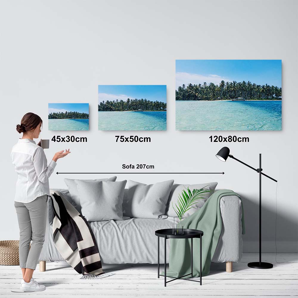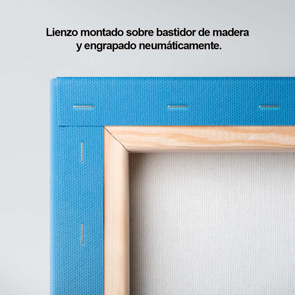 Materiales: Arte impreso sobre un lienzo de algodón, montado sobre un bastidor de madera de pino con un grosor de 4cm.