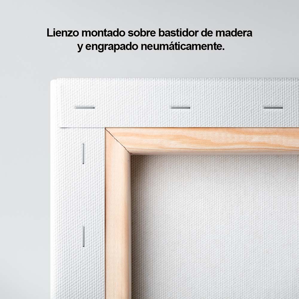 Materiales: Arte impreso sobre un lienzo de algodón, montado sobre un bastidor de madera de pino con un grosor de 4cm.