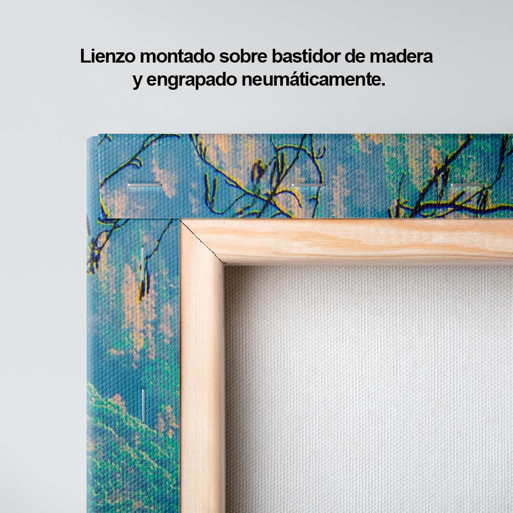 Materiales: Arte impreso sobre un lienzo de algodón, montado sobre un bastidor de madera de pino con un grosor de 4cm.