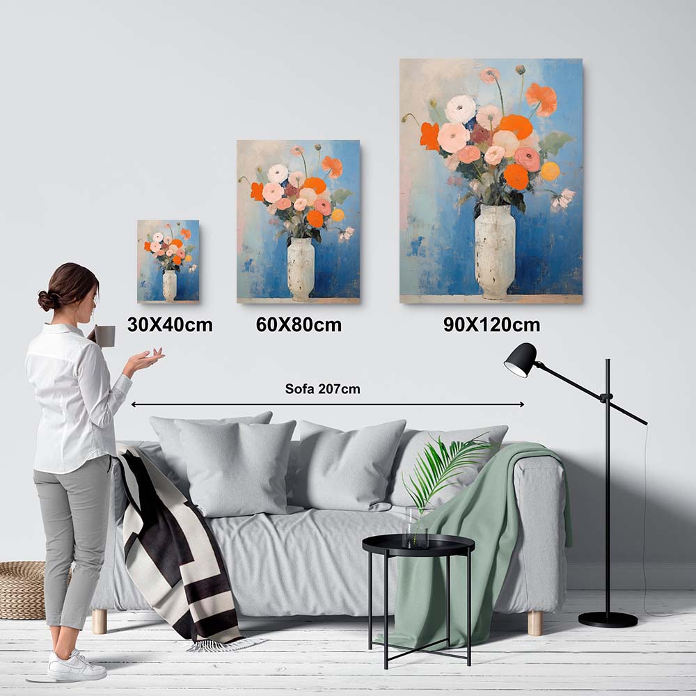 Materiales: Arte impreso sobre un lienzo de algodón, montado sobre un bastidor de madera de pino con un grosor de 4cm.
