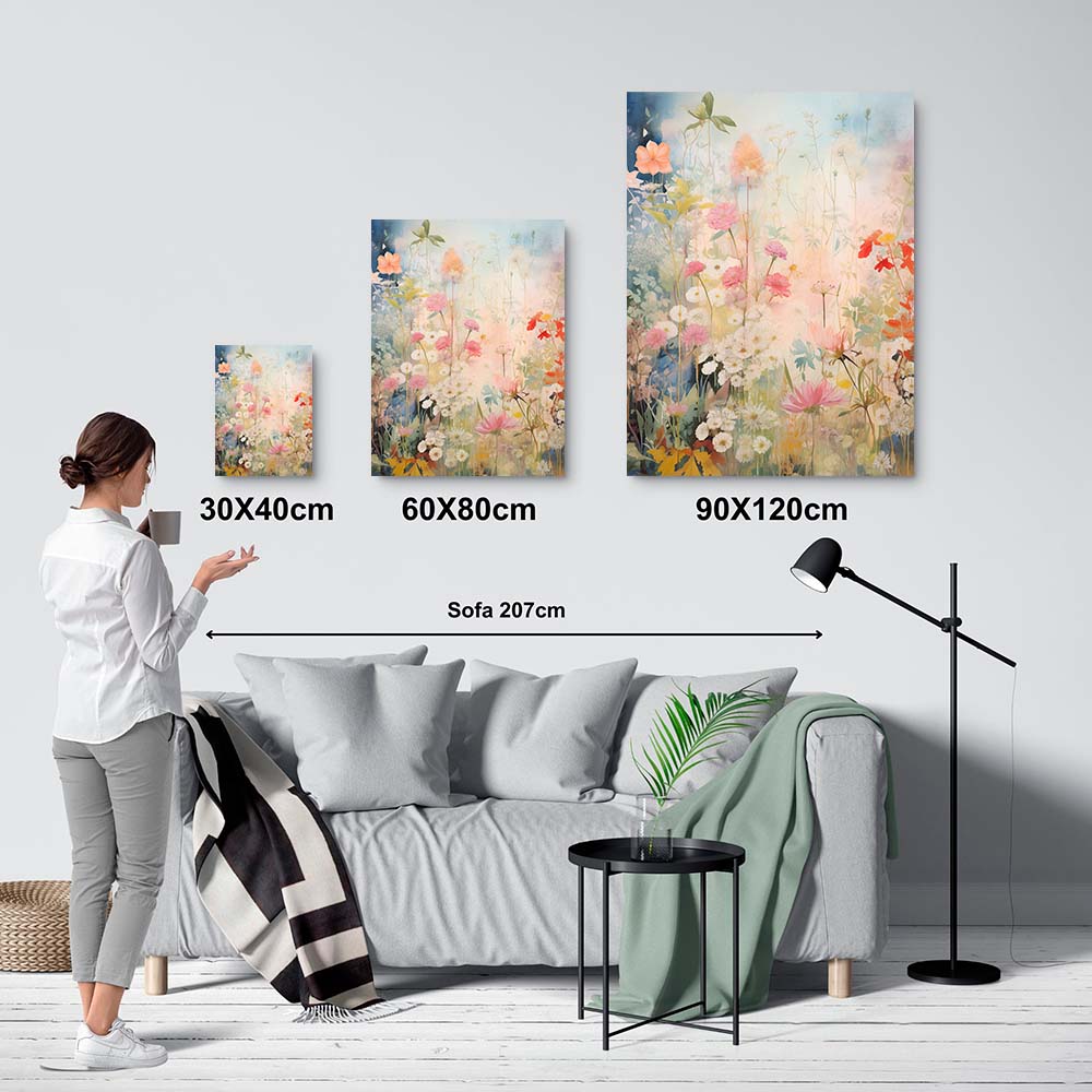 Materiales: Arte impreso sobre un lienzo de algodón, montado sobre un bastidor de madera de pino con un grosor de 4cm.