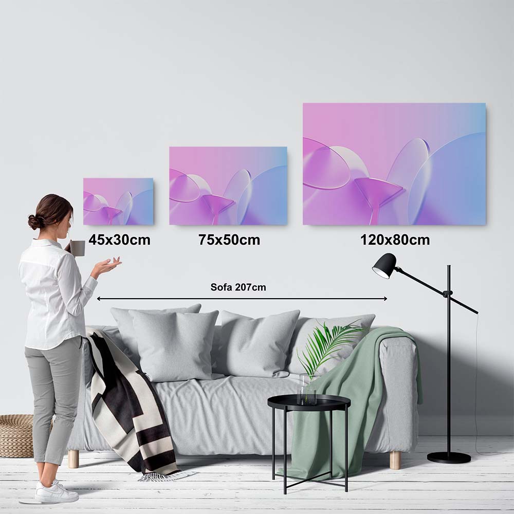 Materiales: Arte impreso sobre un lienzo de algodón, montado sobre un bastidor de madera de pino con un grosor de 4cm.